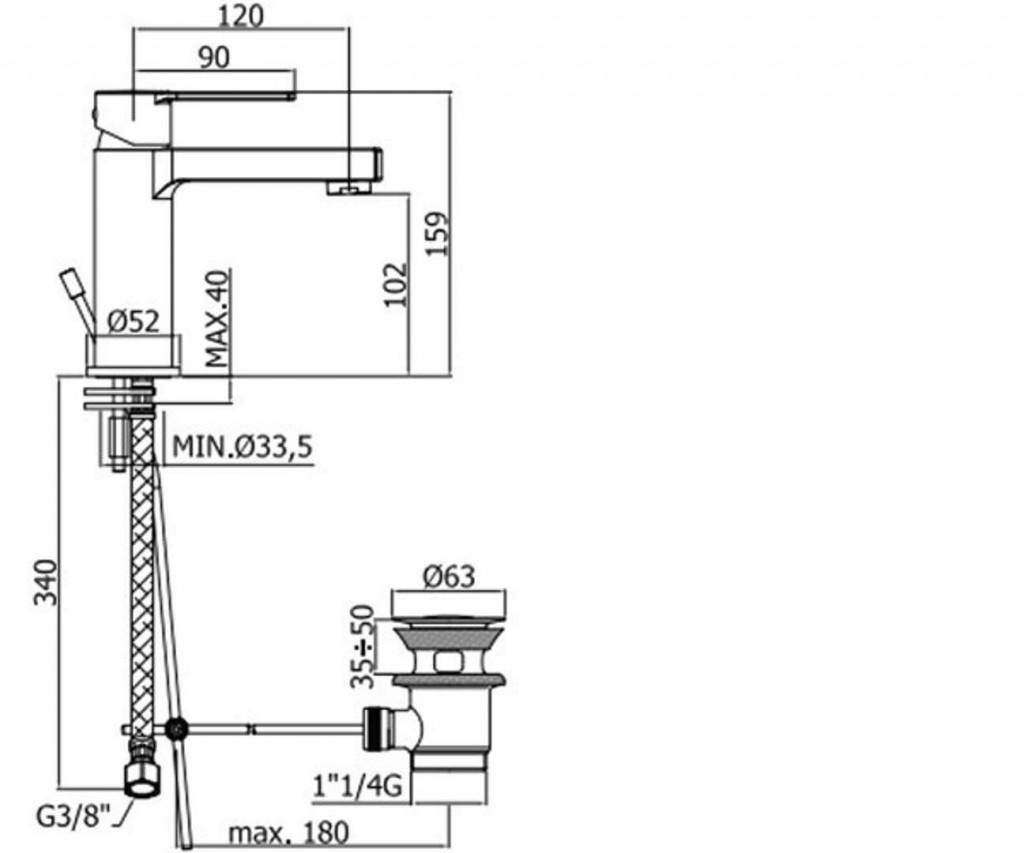 - délka výtoku 120 mm, komfortní zóna 102 mm