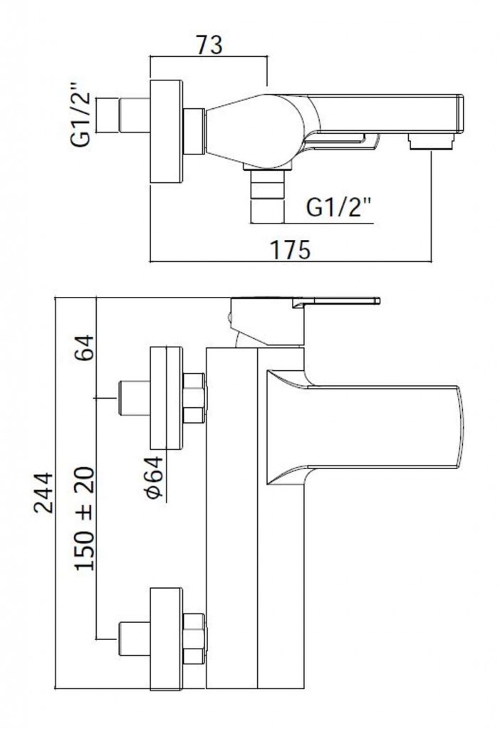 Nástěnná vanová baterie včetně sprchové hlavice, držáku a hadice