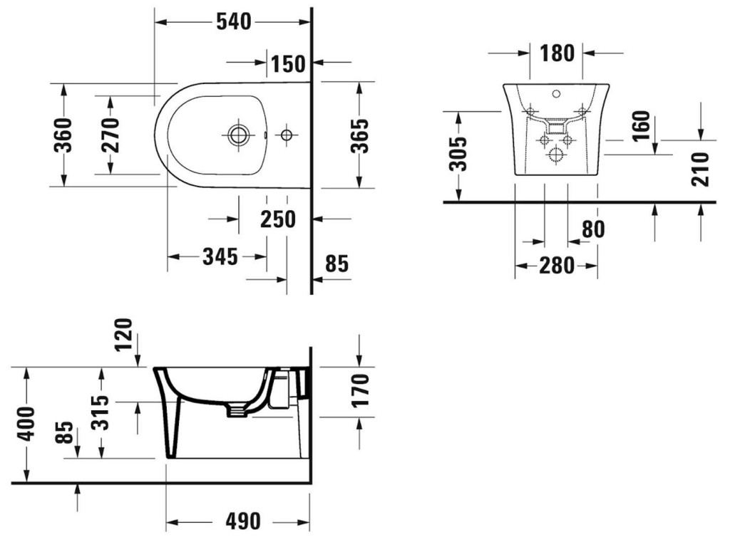 - s 1 otvorem pro bidetovou baterii