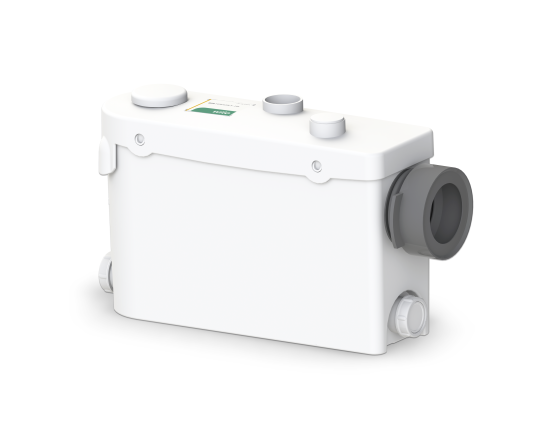 Velmi úzké, automaticky pracující bezhlučné přečerpávací zařízení splaškové vody připravené k okamžitému připojení, dle EN 12050-3, pro instalaci na stěnu pod obklad, se všemi potřebnými spínacími a ovládacími zařízeními.