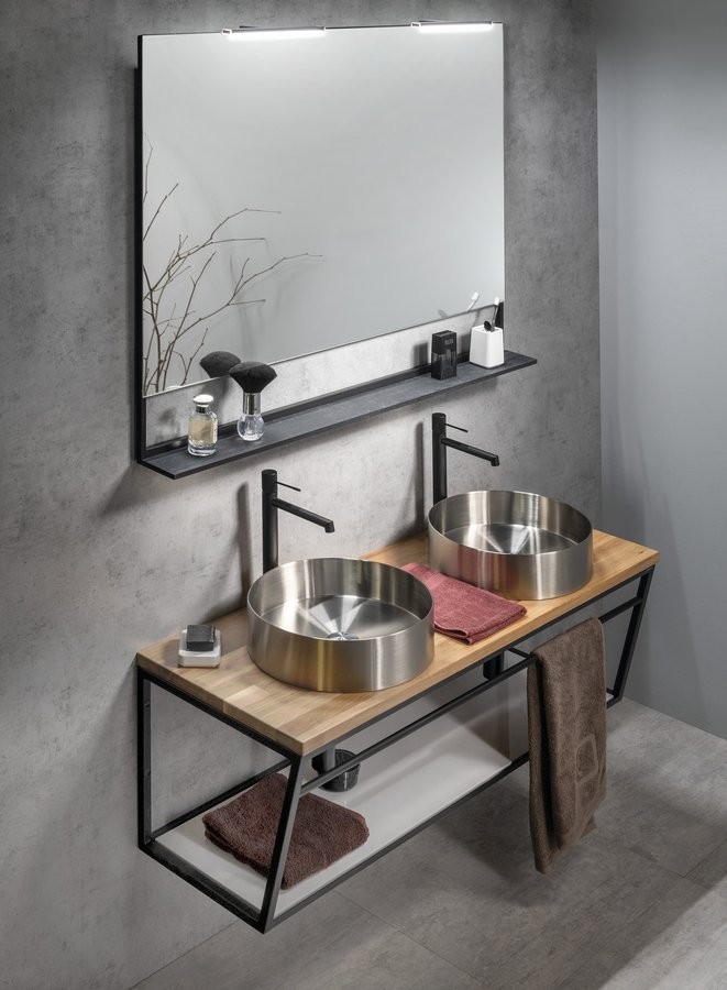 Desky doporučujeme doplnit umyvadly na postavení. Otvor pro baterii a výpust lze vyvrtat v místě instalace nebo na přání dle dodaného výkresu přímo ve výrobě.