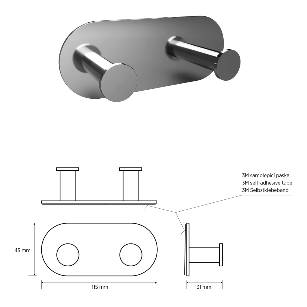 - Opatřen oboustrannou 3M lepící páskou, která zaručuje mimořádnou životnost spoje, spolehlivě nahrazuje vruty či jiné prostředky pro trvalé upevnění