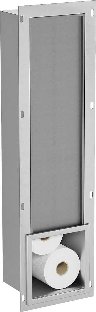 Velice praktickým řešením je modul X-Wall-B s úložným prostorem pro zásobu roliček toaletního papíru.