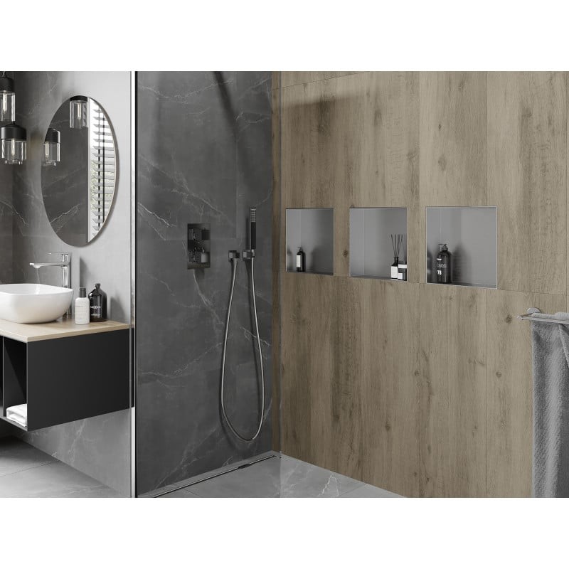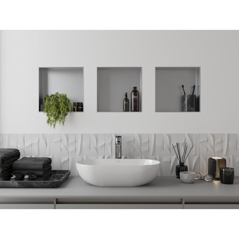Podomítkový modul je dostupný v barevných variantách: bílá, černá, nerez a zlato. Výrobce MEXEN nabízí i jiné varianty polic série X-WALL pro vestabu,