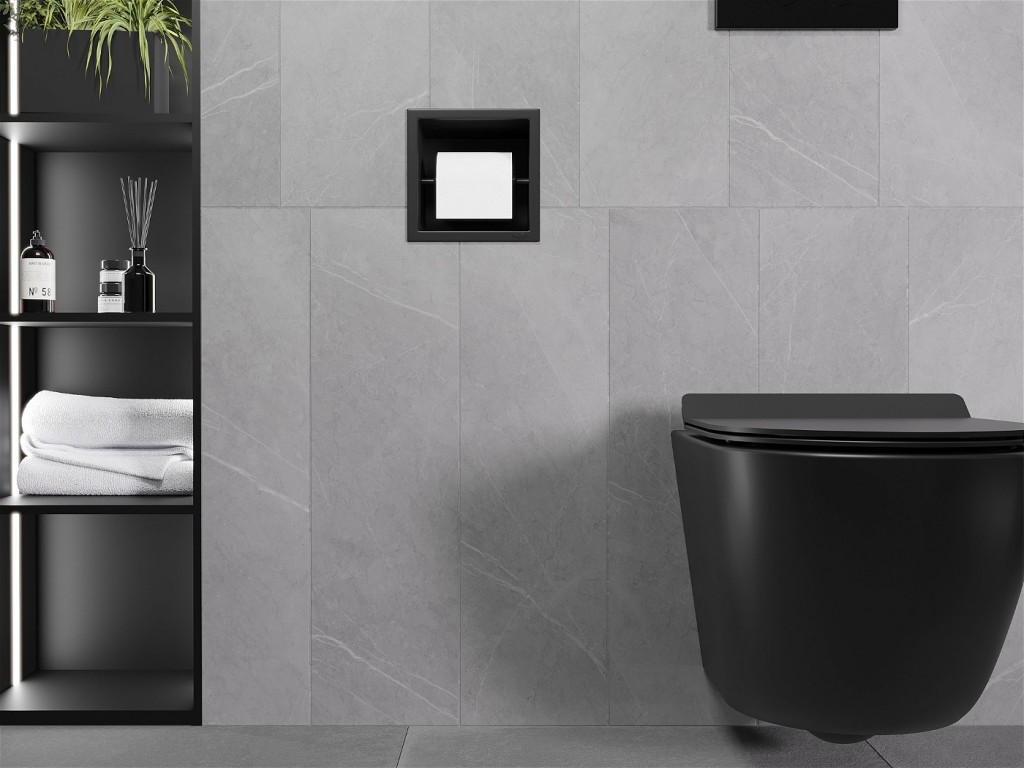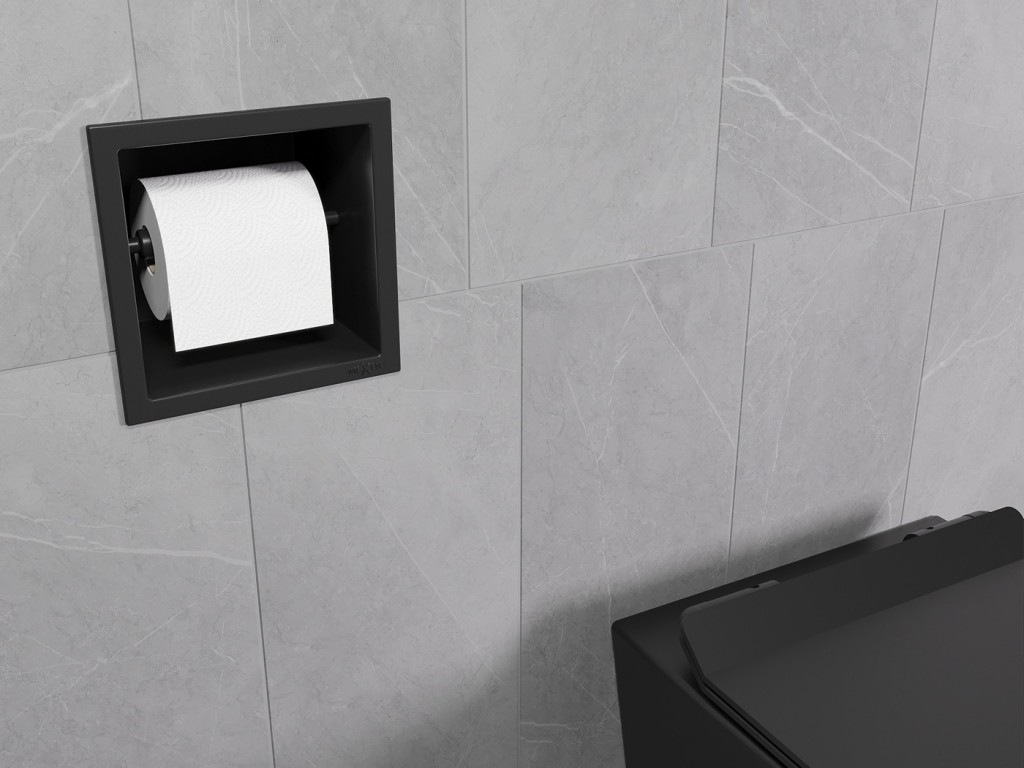 Výrobce Mexen vám nabízí polici X-Wall-P pro zapuštěnou montáž do zdi, určenou na roličku toaletního papíru.