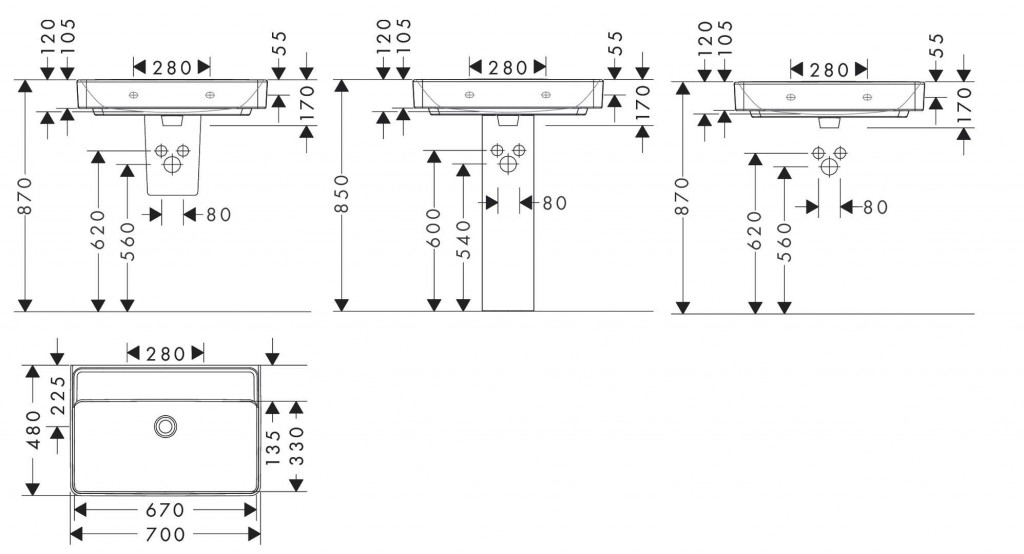 Umyvadlo 700/480 bez otvoru pro baterii, bez přepadu