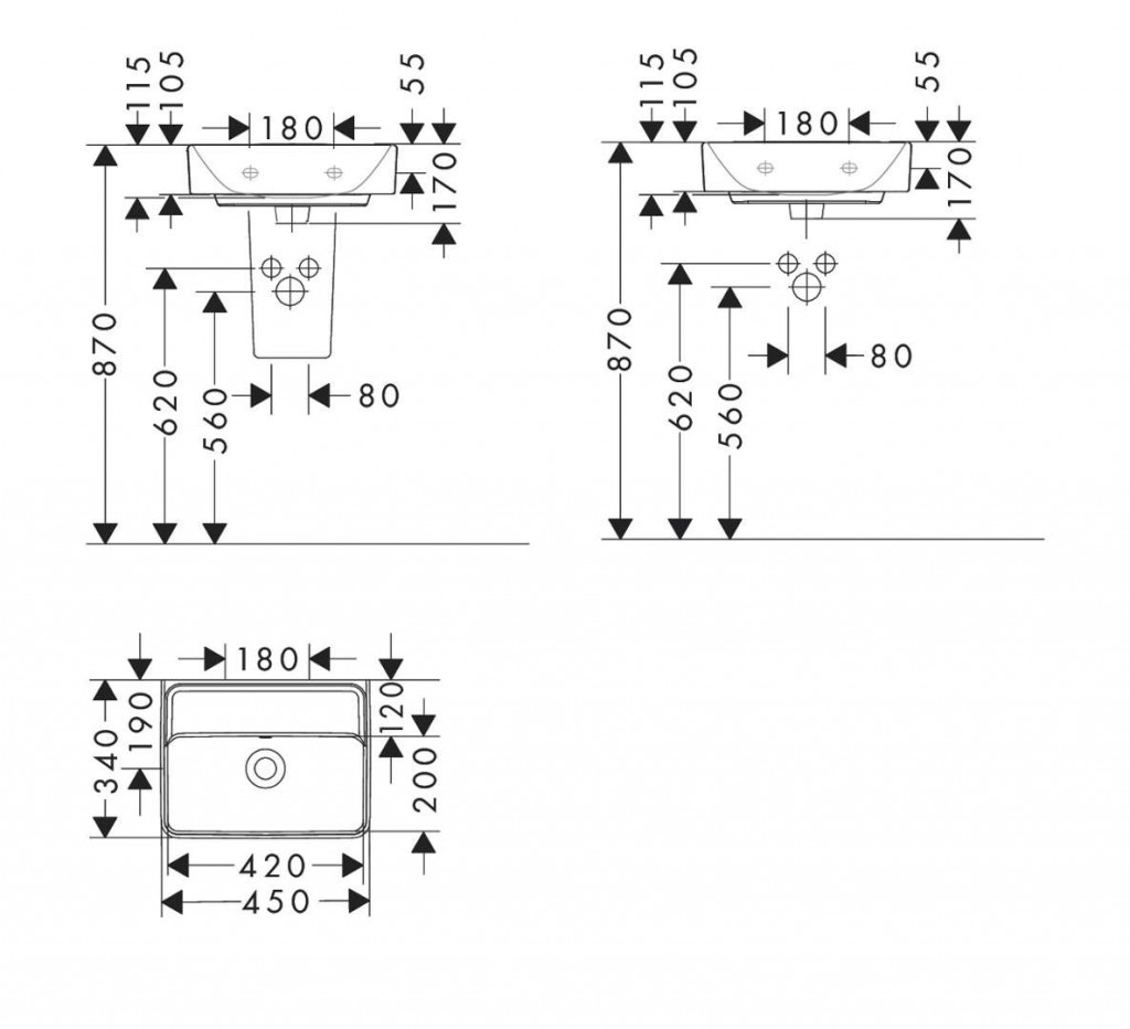 Umývátko 450/340 bez otvoru pro baterii, s přepadem