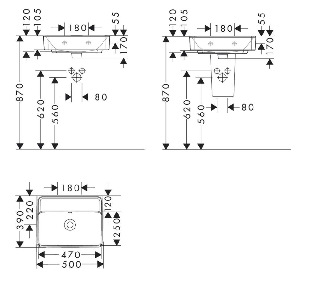 Umývátko 500/390 bez otvoru pro baterii, s přepadem