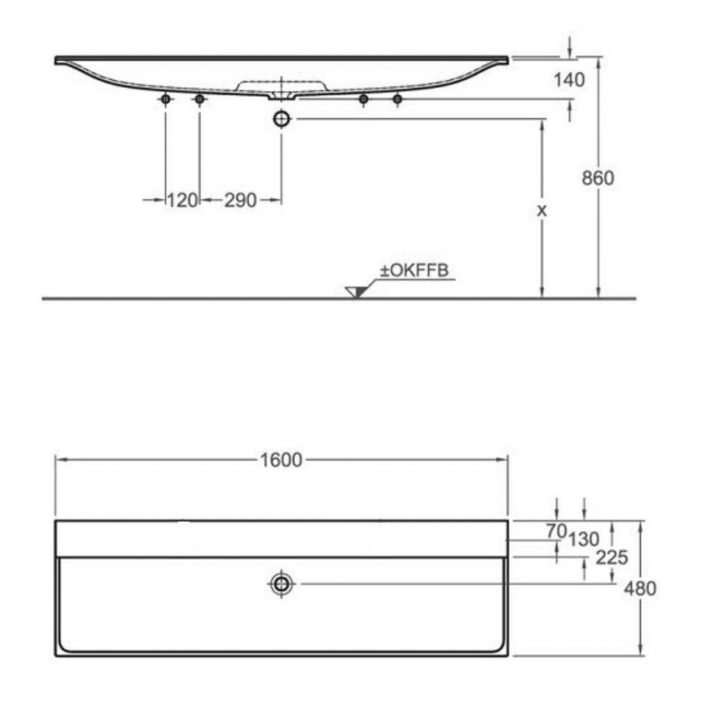 Nábytkové dvojumyvadlo bez přepadu a bez otvoru pro baterii