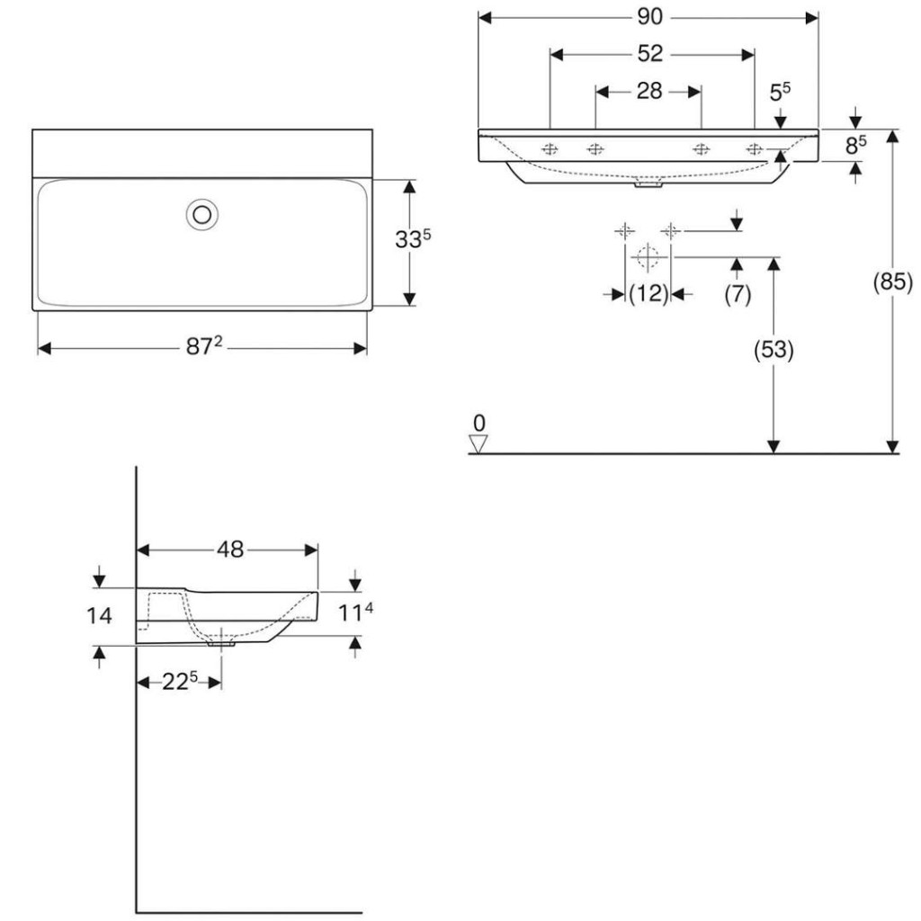 Umyvadlo bez přepadu a bez otvoru pro baterii