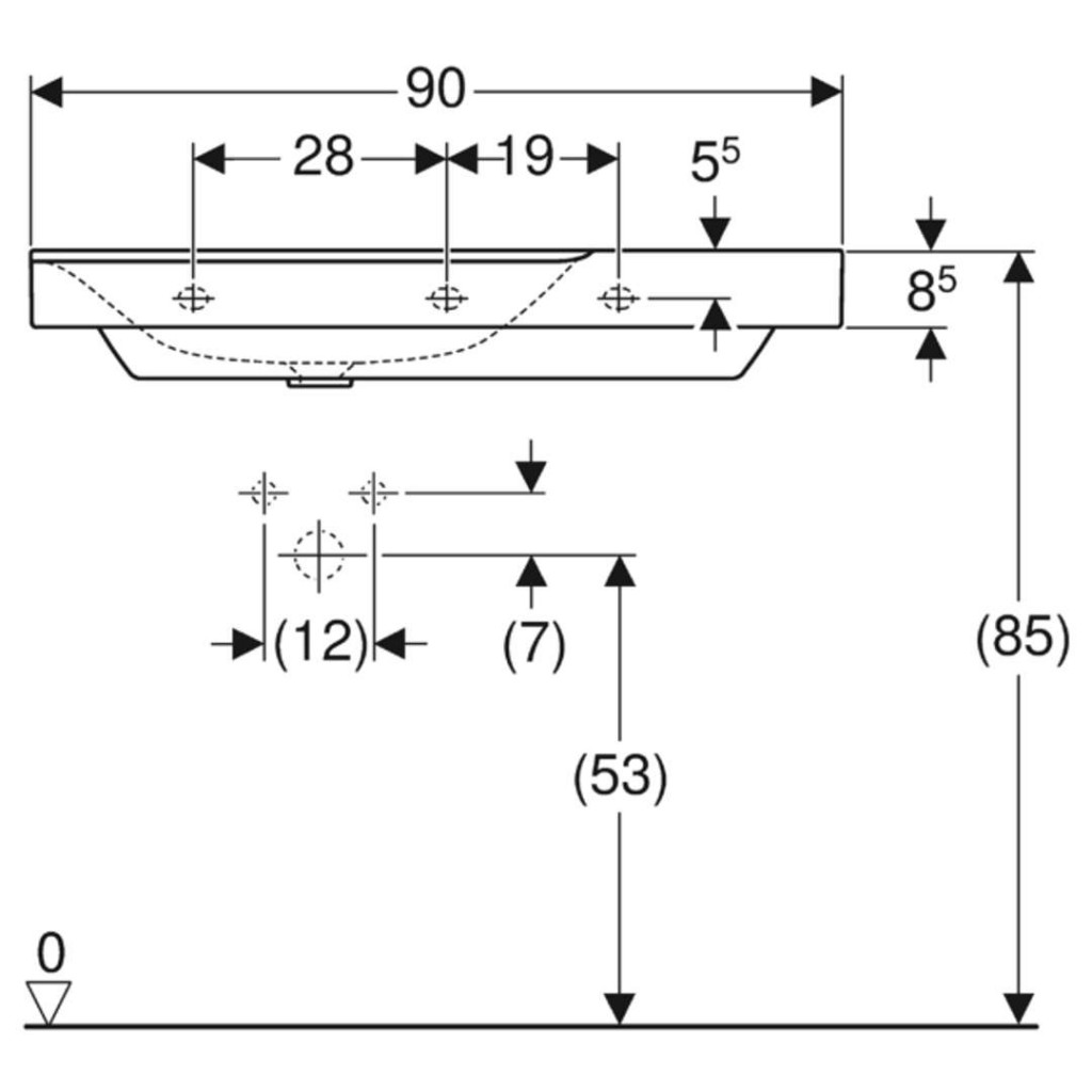 Umyvadlo bez přepadu a bez otvoru pro baterii