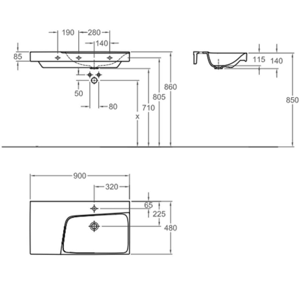 Umyvadlo bez přepadu s jedním otvorem pro baterii