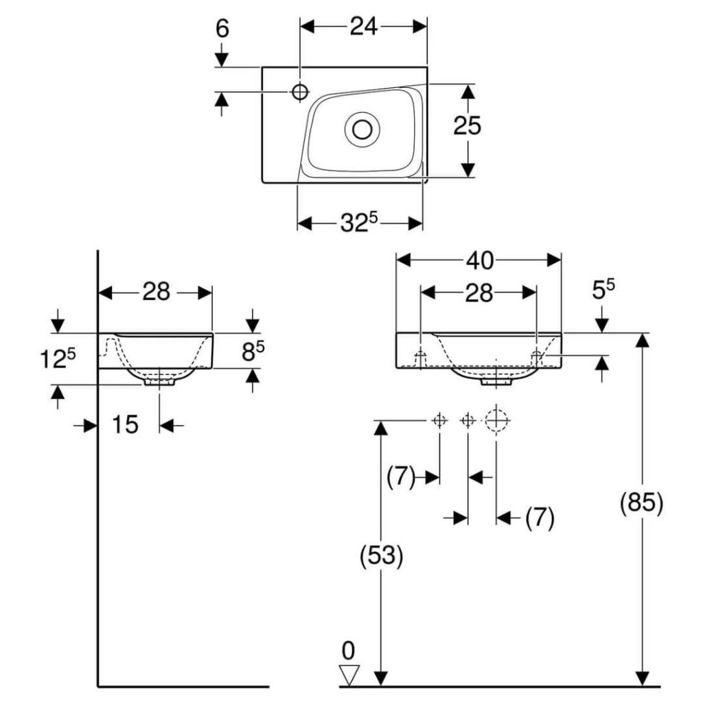 Umývátko bez přepadu s jedním otvorem pro baterii