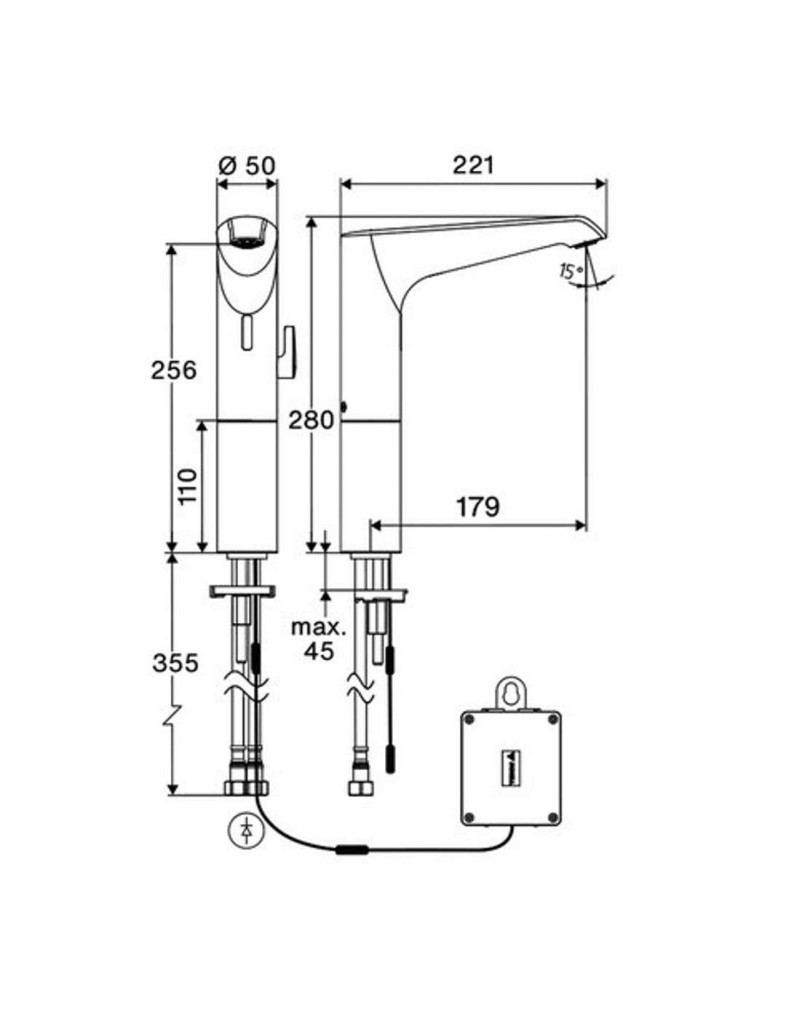- Jednootvorová bezdotyková armatura se senzorem Time-of-Flight (ToF)