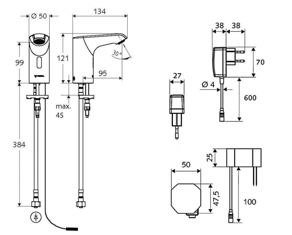 - přerušení funkce při čištění umyvadla/armatury: 60 s