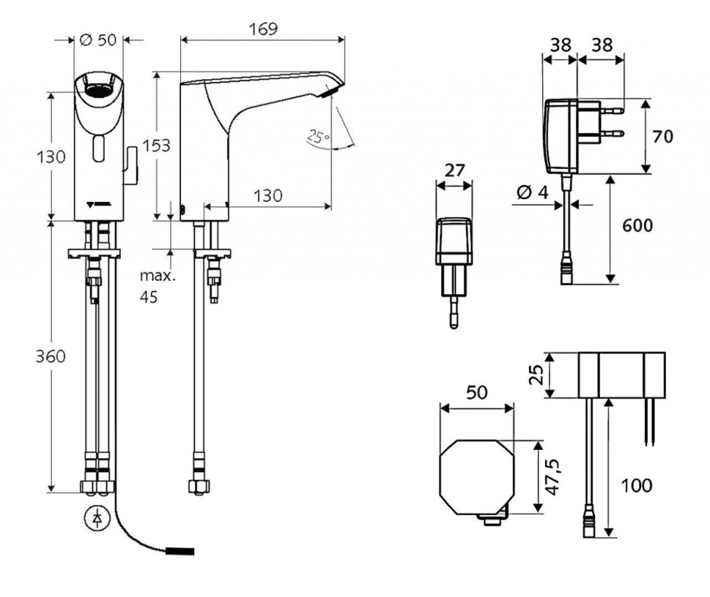 - přerušení funkce při čištění umyvadla/armatury: 60 s
