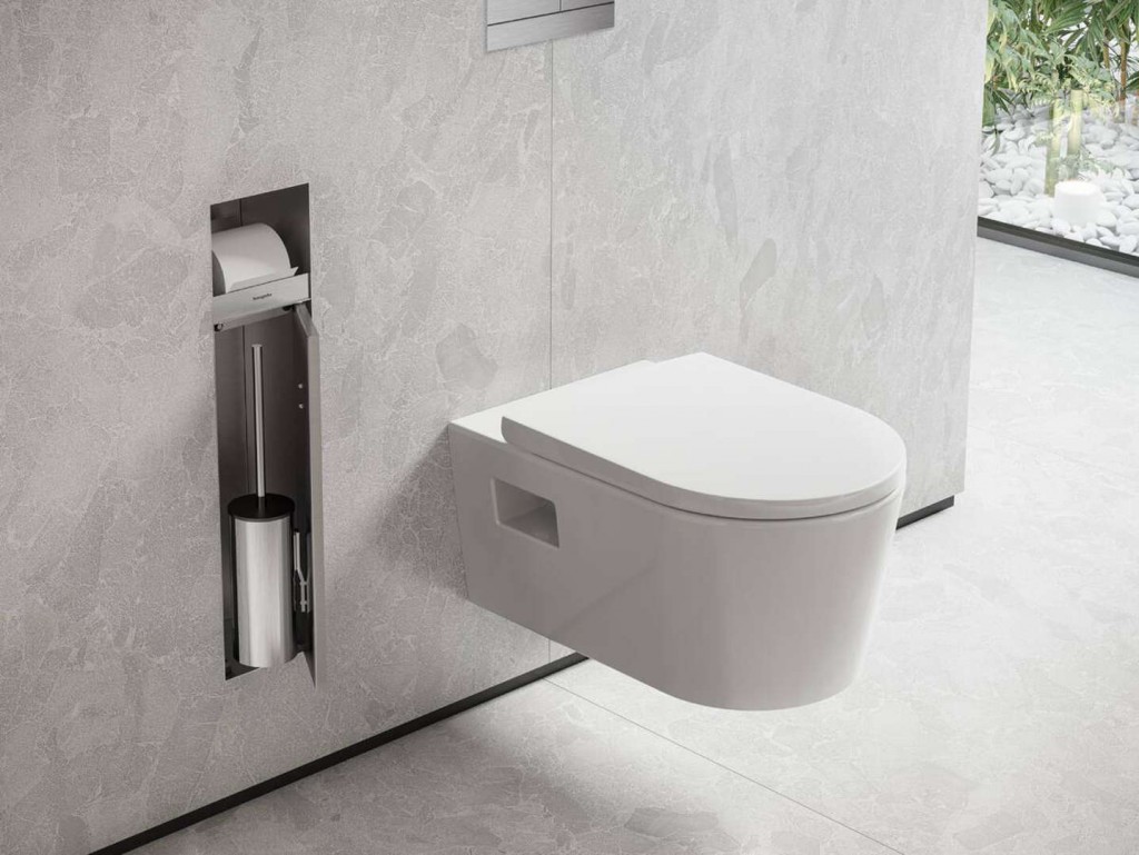 Zapuštěný držák na WC kartáč a toaletní papír, s dvířky