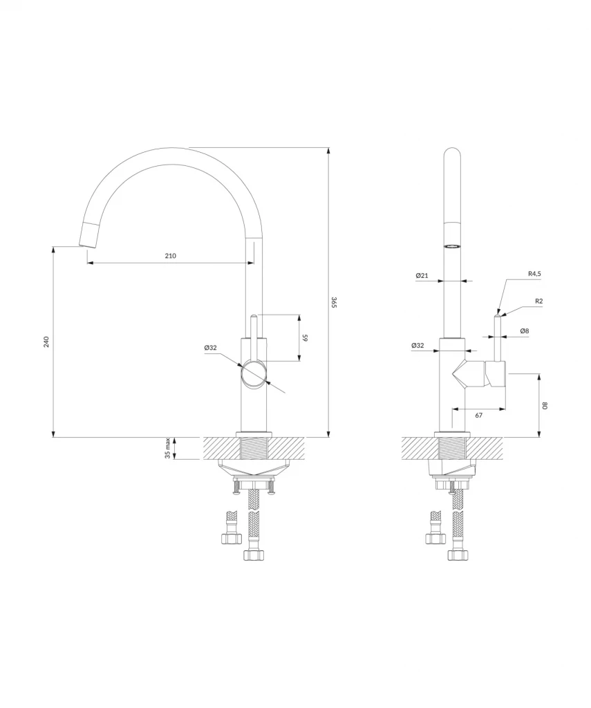 - dosah výtoku: 21 cm