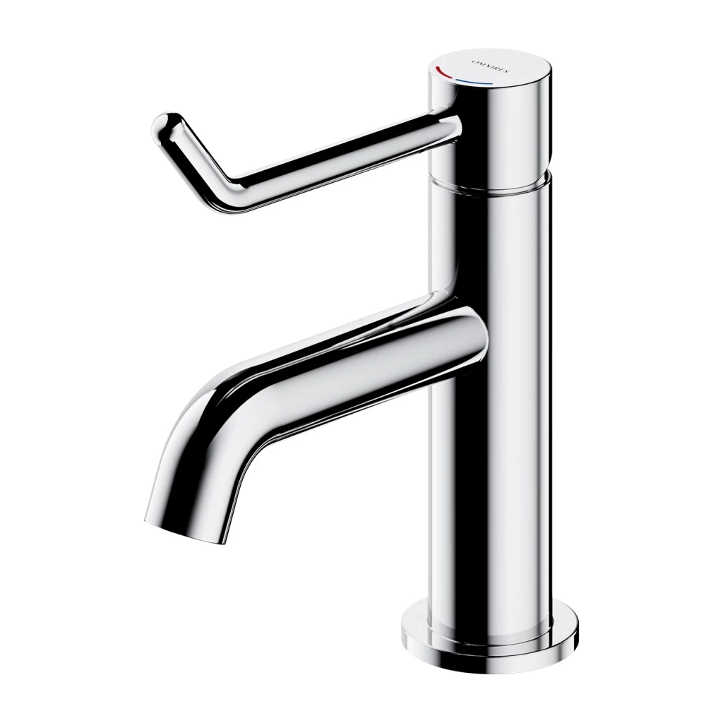 Umyvadlová baterie Inclusive Design nově definuje uživatelský komfort a je přístupnější a intuitivnější pro všechny uživatele. Díky prodloužené ergonomické páce lze průtok vody ovládat rukou, zápěstím nebo loktem. To poskytuje pohodlí pro osoby s omezenou pohyblivostí a také umožňuje hygienické použití v prostorách s vysokými hygienickými standardy. Kontrastní barvy indikátorů teplé a studené vody zlepšují čitelnost a usnadňují intuitivní výběr teploty.