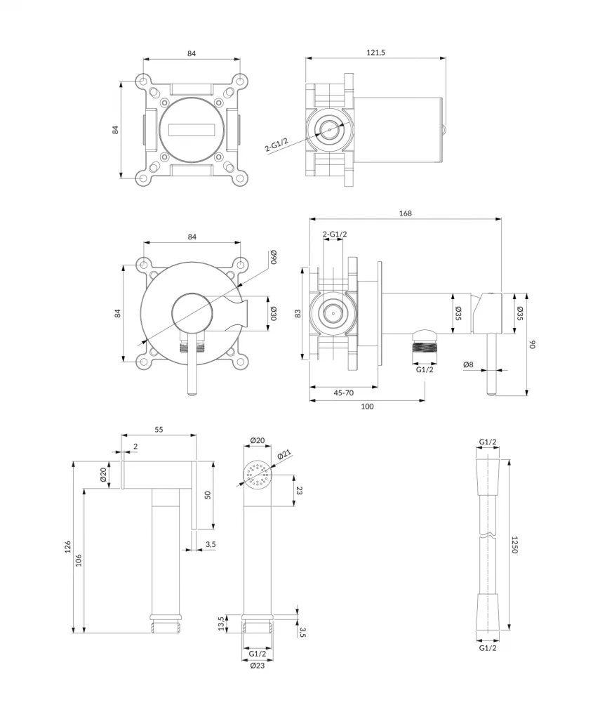 Podomítková bidetová baterie OMNIRES Y se skládá: