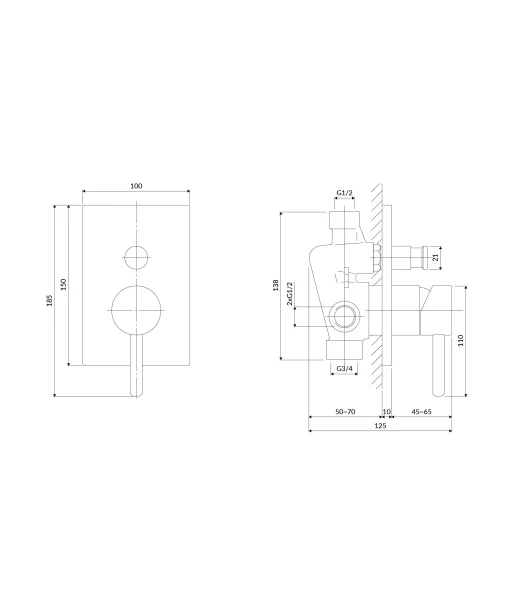 • dva vstupy (pro horkou a studenou vodu): 1/2", dva výstupy smíšené vody: 1/2" a 3/4"
