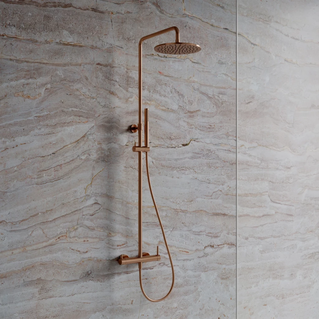 - mosazná baterie do sprchy s keramickou kartuší a roztečí 15 cm