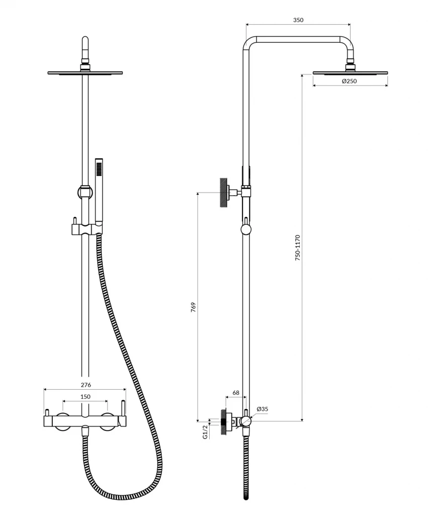 - sprchová hadice s mosazným pláštěm, délka: 150 cm