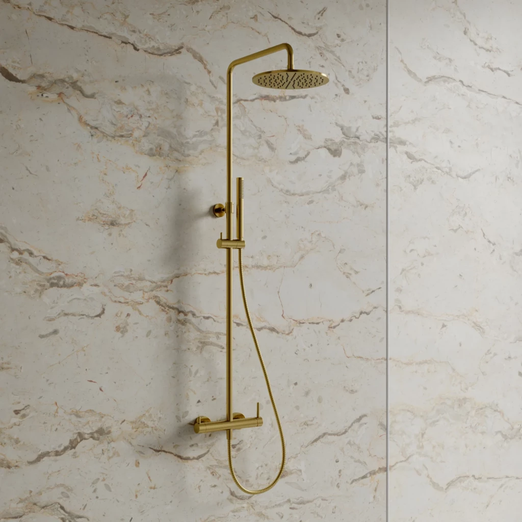 - mosazná baterie do sprchy s keramickou kartuší a roztečí 15 cm