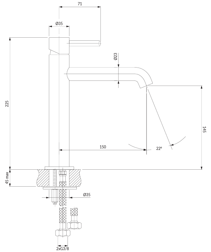 - dosah výtoku: 15 cm