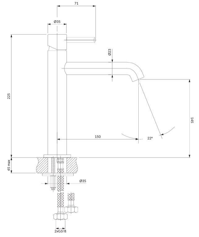 - dosah výtoku: 15 cm