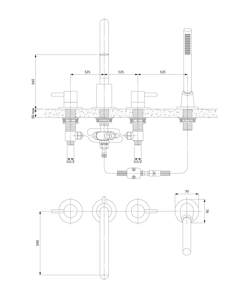 Čtyřprvková stojánková baterie s instalací na okraj vany je vyrobena z kvalitní mosazi třídy A a je vybavena nejkvalitnější keramickou kartuší, která zajišťuje plynulé a přesné řízení průtoku vody. Silikonové výstupky EASY CLEAN umožňují vyčistit výrobek od usazenin vodního kamene jednoduchým a rychlým otřením rukou. Systém SMART FIX použitý u vanové baterie umožňuje v případě potřeby vyměnit sprchovou hadici bez nutnosti demontáže vany. Provzdušňovač poslední generace s technologií AIR WATER provzdušňuje vodu, takže je měkká a příjemná na dotek.