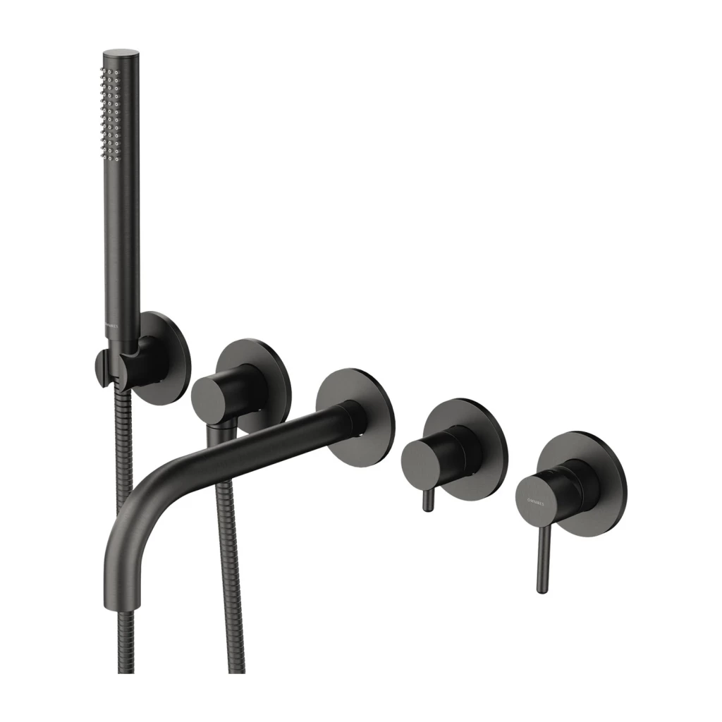 Vanová 5-otvorová páková baterie OMNIRES Y s podomítkovou montáží. Je vyrobena z kvalitní mosazi třídy A a vybavena nejkvalitnější keramickou kartuší, která zajišťuje plynulou a přesnou regulaci proudu vody. Díky technologii AIR WATER je voda měkká a příjemná na dotek. Baterie je dostupná v barevných variantách kartáčovaná mosaz, černá, chromová, grafit, kartáčované zlato, nikl, staro měď, zlatá a měď,