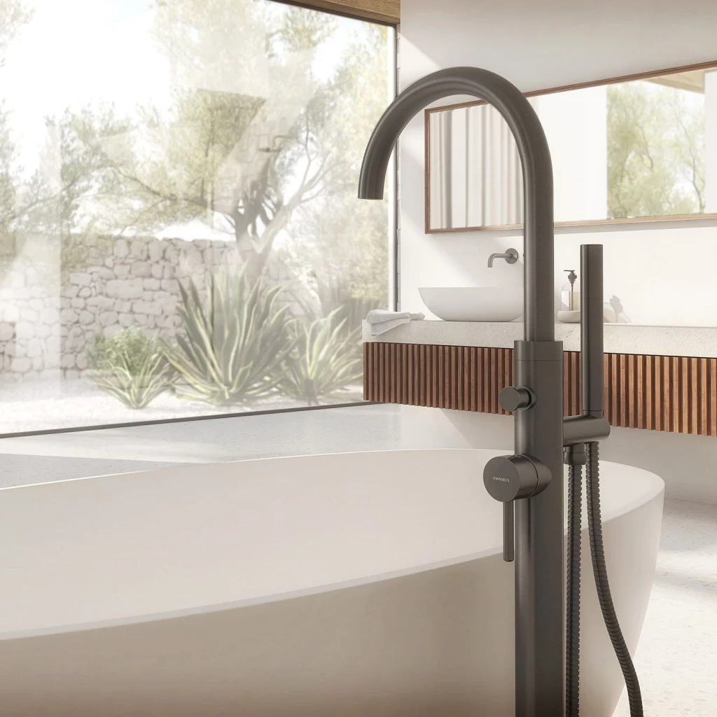 Vanová baterie z kolekce OMNIRES Y je vyrobena z kvalitní mosazi třídy A a vybavena keramickou kartuší, která zajišťuje plynulou a přesnou regulaci proudu vody. Podlahové těleso je součástí baterie. Díky technologii AIR WATER je voda měkká a příjemná na dotek. Proud nestříká, je tichý a konzistentní, i když dojde k jakýmkoli změnám tlaku vody.