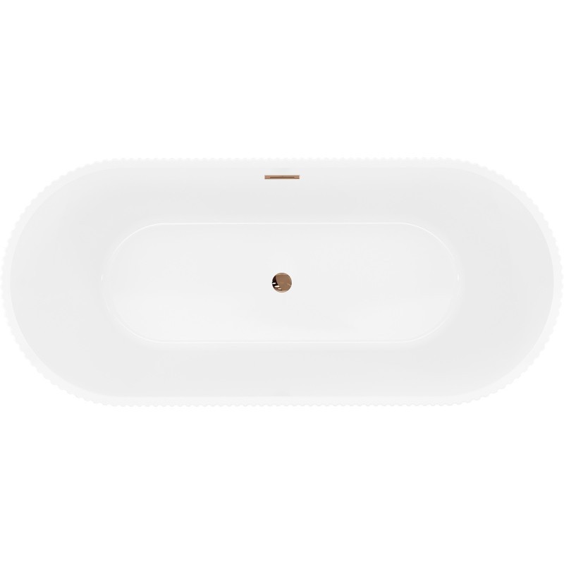 Specifikace produktu: Rozměry: 170 x 75 cm Výška: 58 cm Hloubka: 45 cm Instalace: Volně stojící Materiál: Sanitární akrylát Barva: Bílá/Černá Povrchová úprava: Růžové zlato Konstrukce: Drážkovaná Otvor pro přepad: Ano Otvor pro baterii: Ne Sifon a zátka click-clack jsou součástí balení Odolné vůči baterii a UV záření