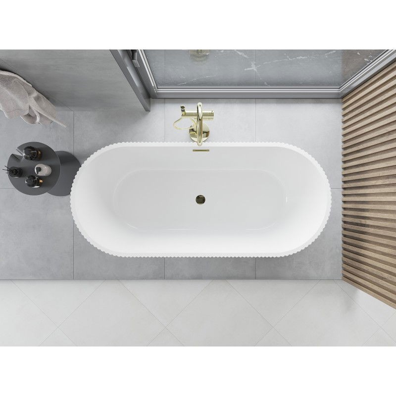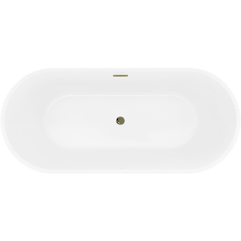 Specifikace produktu: Rozměry: 170 x 75 cm Výška: 58 cm Hloubka: 45 cm Instalace: Volně stojící Materiál: Sanitární akrylát Barva: Bílá/Černá Povrchová úprava: Zlatá Struktura: Drážkovaná Otvor pro přepad: Ano Otvor pro baterii: Ne Sifon a zátka click-clack jsou součástí dodávky Odolné vůči baterii, baterii a UV záření