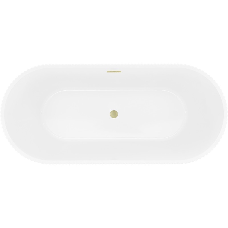 Specifikace produktu: Rozměry: 170 x 75 cm Výška: 58 cm Hloubka: 45 cm Instalace: Volně stojící Materiál: Sanitární akrylát Barva: Bílá/Černá Povrchová úprava: Kartáčované zlato Konstrukce: Drážkovaná Otvor pro přepad: Ano Otvor pro baterii: Ne Sifon a zátka click-clack jsou součástí dodávky Odolné vůči baterii a UV záření