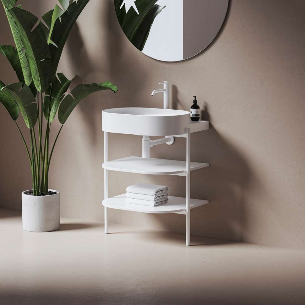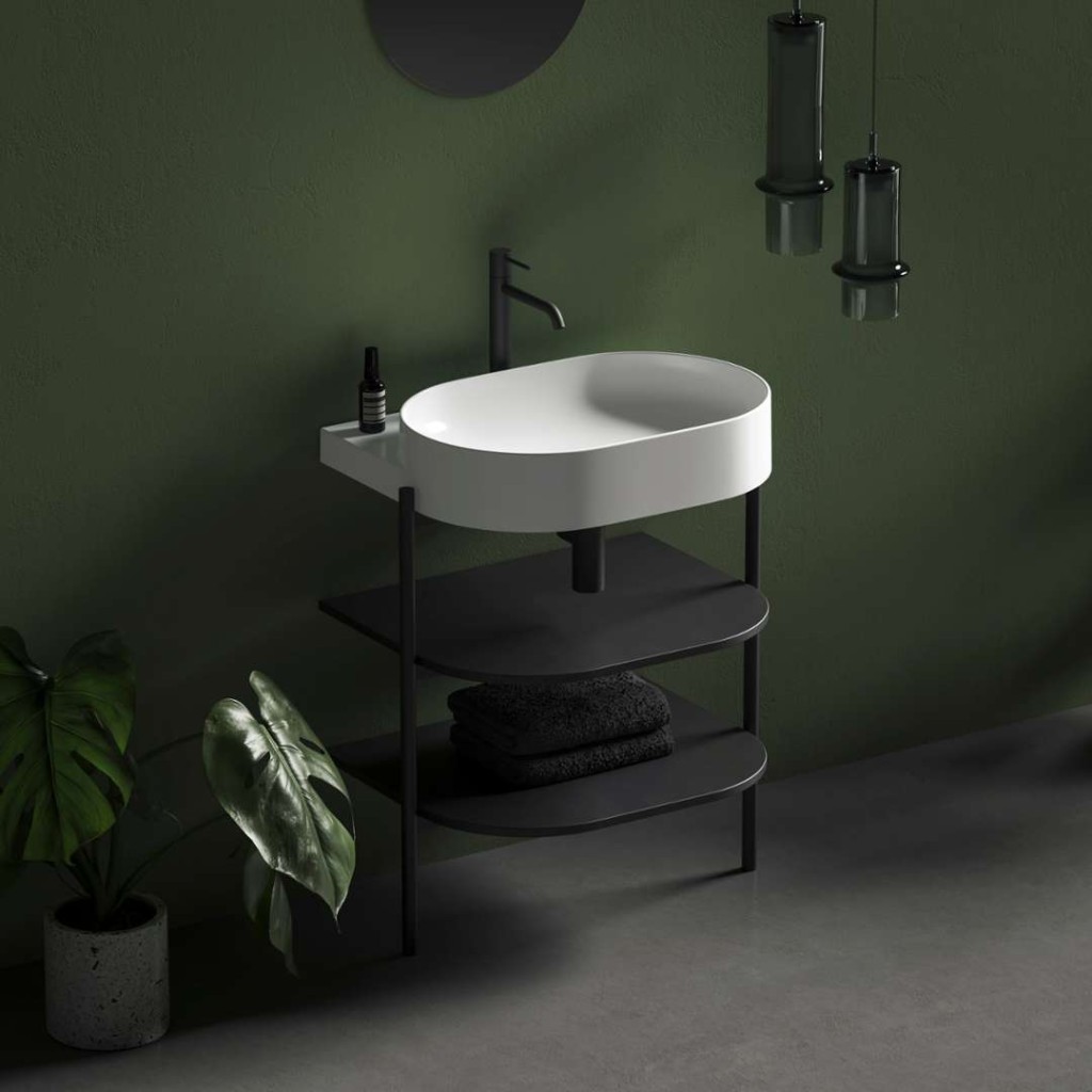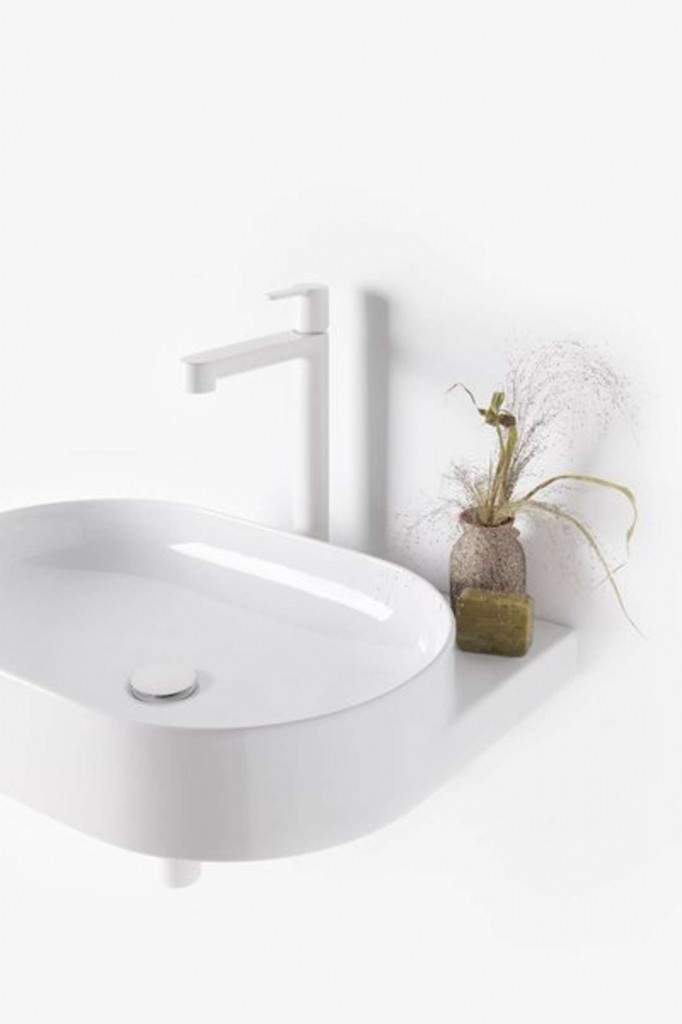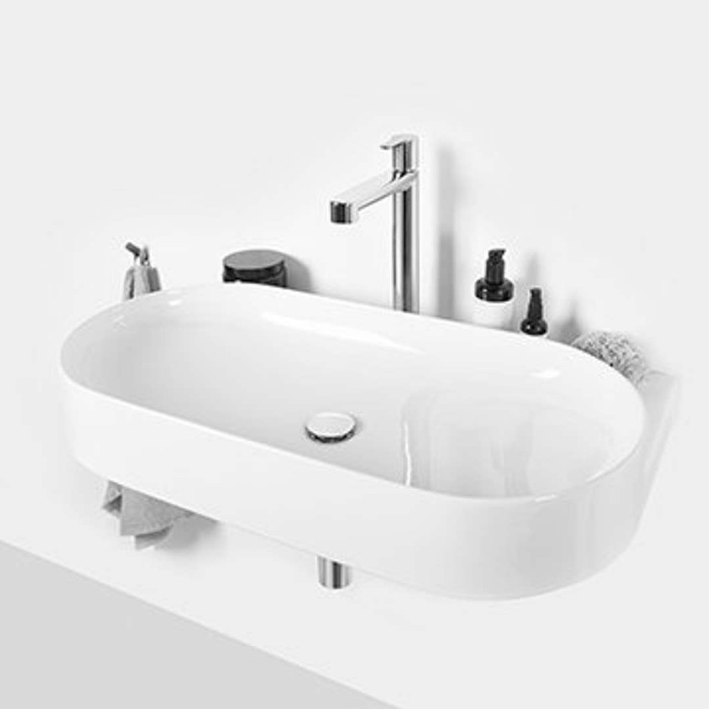 Praktický oválný design umyvadla je doplněn o užitečnou odkládací plochu, což zvyšuje jeho funkčnost a komfort pro každodenní používání. Tato plocha nabízí dostatek místa pro umístění toaletních potřeb.