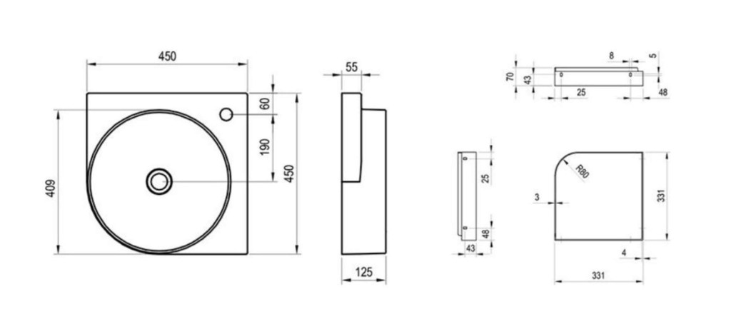 Rohové umyvadlo Yard 450 C