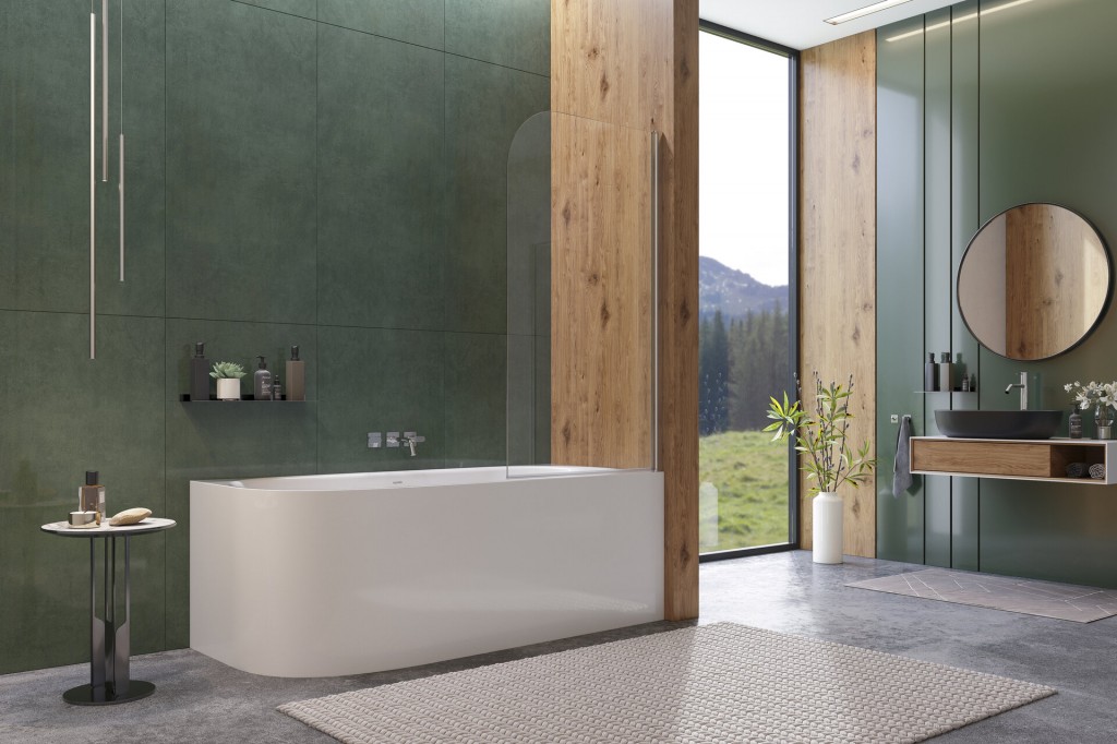 Vanová zástěna YES L1 80 s obloukovým rohem.