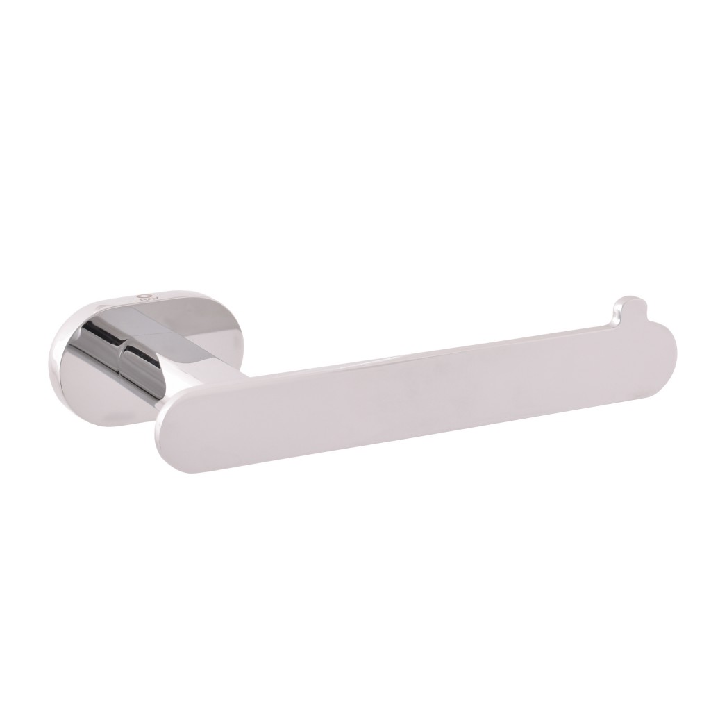 Klasický bílochromový držák na toaletní papír je praktickým doplňkem na WC.