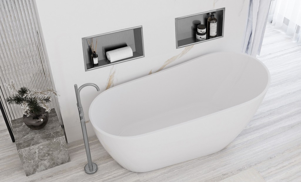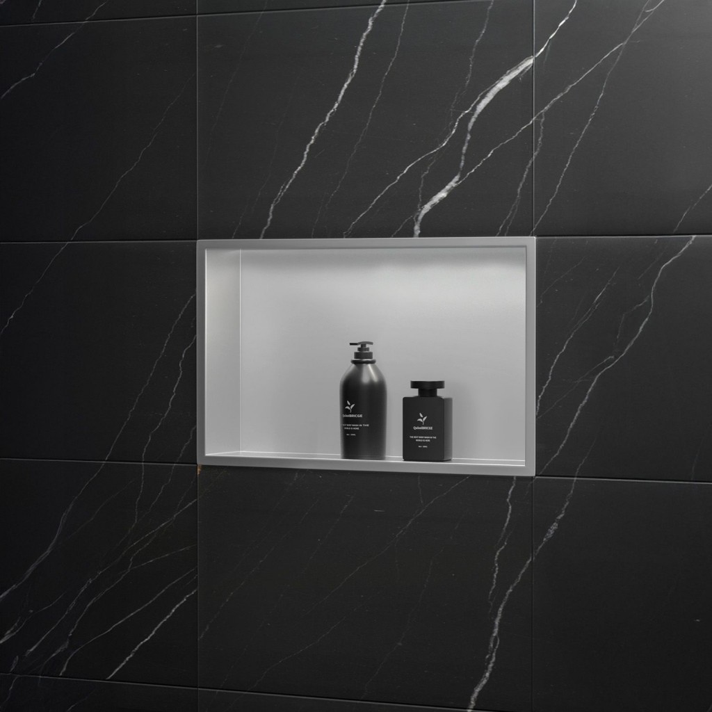 Koupelnová polička je praktickým řešením pro uspořádání prostoru v koupelně. Vyrobeno z odolného materiálu, zajišťuje odolnost a stabilitu. Svým funkčním designem skvěle zapadne do různých koupelnových aranžmá, umožní vám uložit kosmetiku, ručníky a další potřebné doplňky. Díky možnosti instalace do výklenku police dokonale využívá dostupný prostor a zároveň dodává koupelně elegantní vzhled.