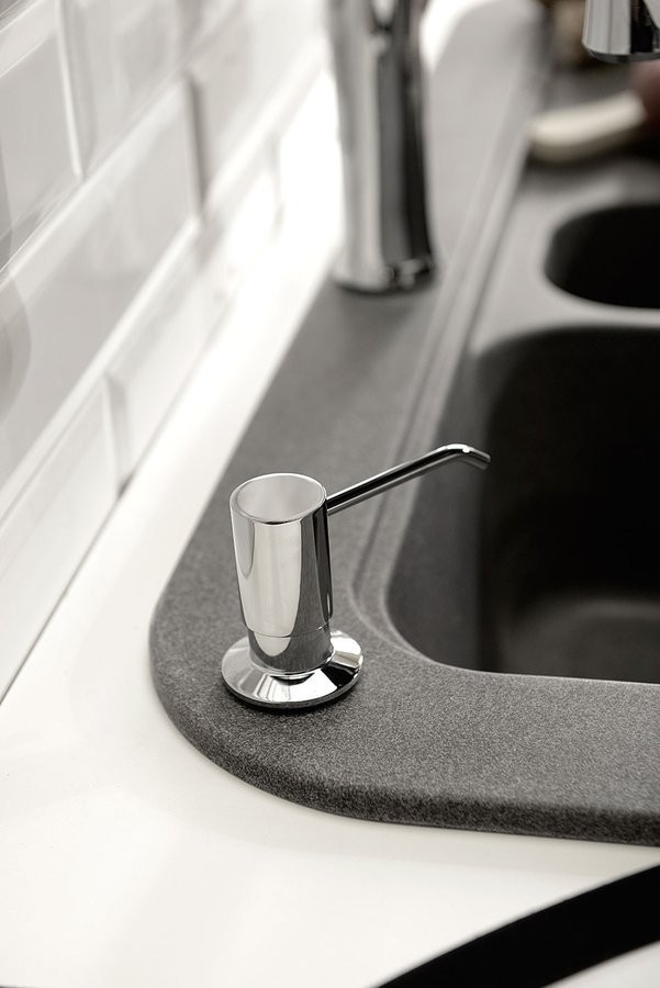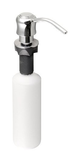 Zápustný dávkovač mýdla a saponátu s možností instalace do umyvadla místo stojánkové baterie, nebo do desky vedle umyvadla či dřezu.
