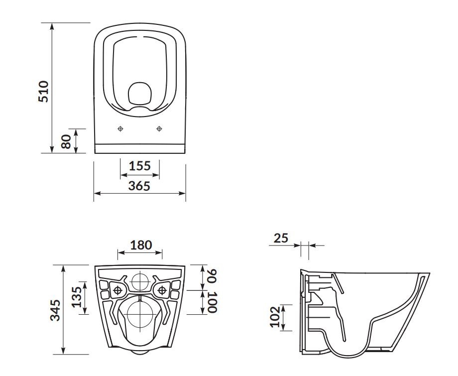 Funkce splachování 2/4l, 2,5/5l nebo 3/5l. WC mísa se doporučuje montovat s podomítkovým systémem.