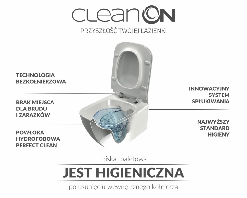 | Charakter | Závěsná WC mísa CLEAN ON /bez oplachového kruhu/ |