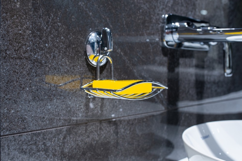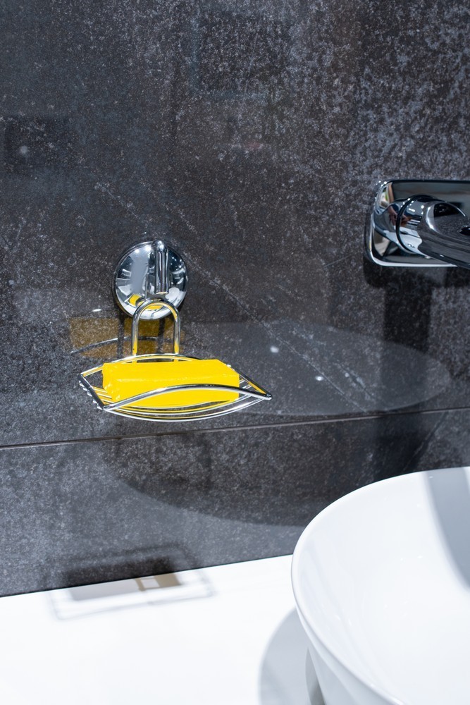 Koupelnová miska na mýdlo se snadno instaluje pomocí přísavky se zacvaknutím.