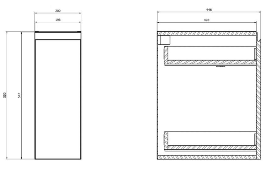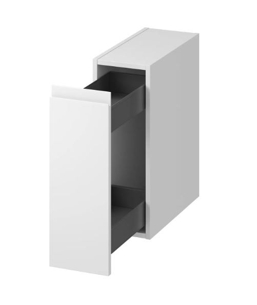 Úzká skříňka po celé délce je ideální pro uložení vysokých lahví s tekutinami a dalších nezbytností. Tenké kovové bočnice zásuvek v antracitové barvě dodávají elegantní a moderní nádech.