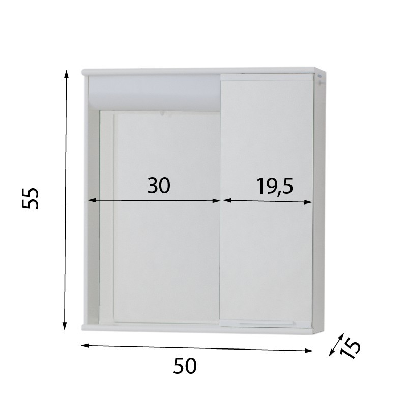 OLSEN SPA - Závěsná skříňka se zrcadlem LUMIX I - Rozměr A - 50 cm, Rozměr B - 15 cm, Rozměr C - 55 cm, Varianta - Pravá (OLNPSE5055P)