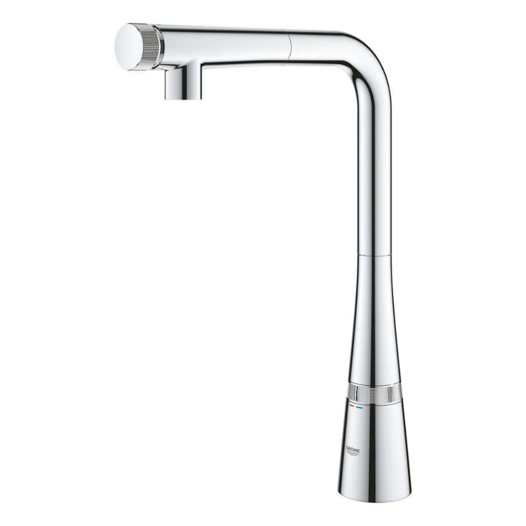 Baterie Zedra SmartControl umožňuje regulaci proudu vody a její teploty jednou rukou. Vysoká výpusť usnadní plnění velkých hrnců a vytahovací sprška zvyšuje dosah použití baterie. Díky výkonným magnetům se také sprchová hlavice po použití automaticky a plynule zasune zpět do své původní polohy. Tato dřezová baterie také disponuje otočným ventilem pro regulaci objemu vody.