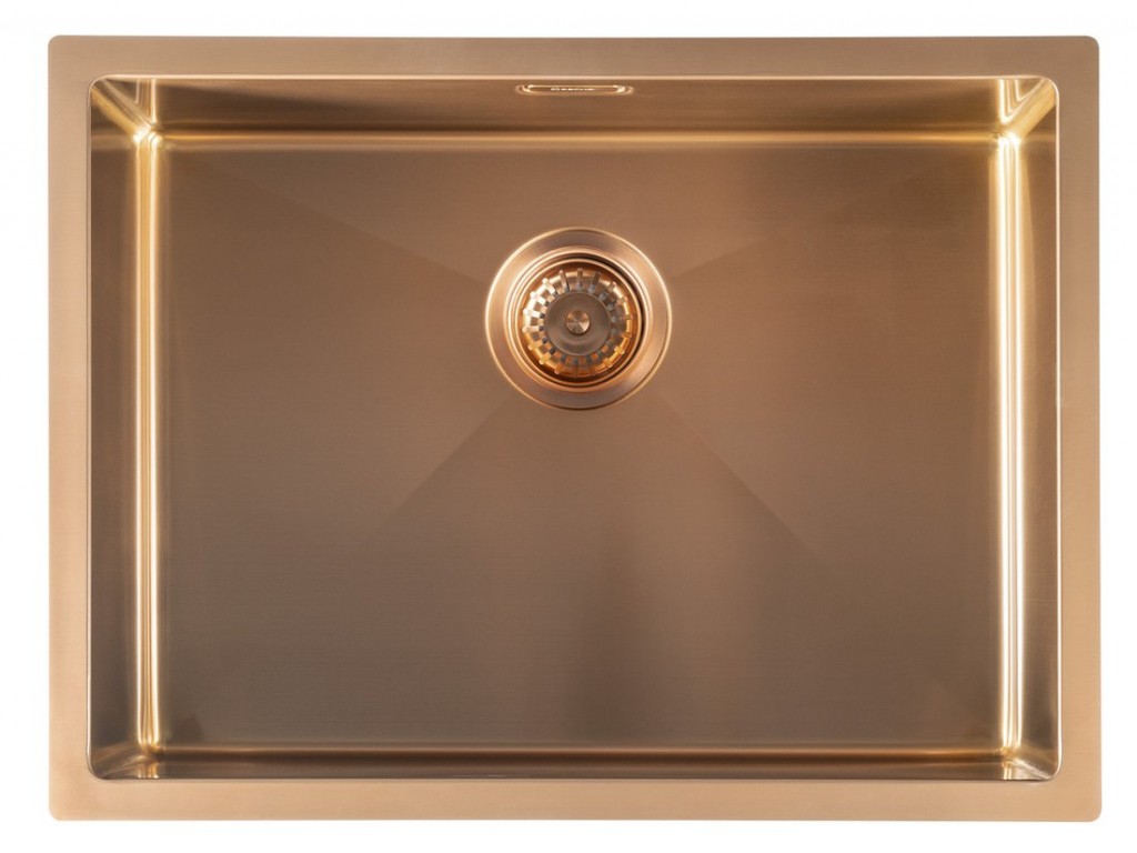 Dřez je usazen shora, s pracovní deskou tvoří rovinu, je do ní integrován. |