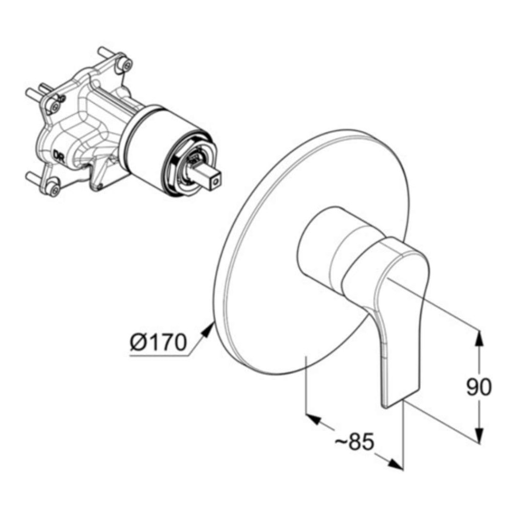 Pro kompletní instalaci je nutné dokoupit podomítkové těleso